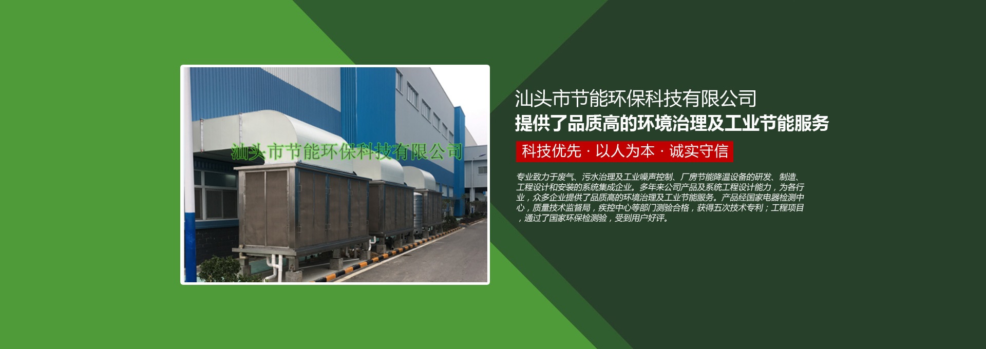 汕頭市節(jié)能環(huán)保科技有限公司創(chuàng)建于1998年,是一家專業(yè)致力于廢氣、污水、粉塵、噪聲治理,廠房節(jié)能降溫設(shè)備的研發(fā)、制造、工程設(shè)計(jì)和安裝的系統(tǒng)集成企業(yè)。多年來公司產(chǎn)品及系統(tǒng)工程設(shè)計(jì)能力,為各行業(yè),眾多企業(yè)提供了品質(zhì)高的環(huán)境治理及工業(yè)節(jié)能服務(wù)。產(chǎn)品經(jīng)國(guó)家電器檢測(cè)中心,質(zhì)量技術(shù)監(jiān)督局,疾控中心等部門測(cè)驗(yàn)合格,獲得五次技術(shù)專利;工程項(xiàng)目通過了國(guó)家環(huán)保檢驗(yàn)檢測(cè),受到用戶好評(píng)。